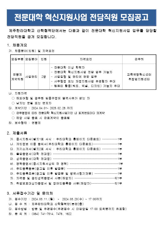 »êÇÐÇù·Â´Ü (Àü¹®´ëÇÐÇõ½ÅÁö¿ø»ç¾÷) Àü´ãÁ÷¿ø ¸ðÁý °ø°í