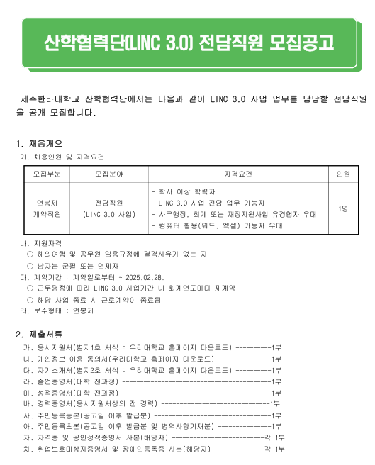 »êÇÐÇù·Â´Ü (LINC3.0»ç¾÷´Ü) Àü´ãÁ÷¿ø ¸ðÁý °ø°í