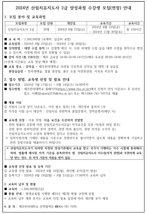 2024³â »ê¸²Ä¡À¯Áöµµ»ç 2±Þ ¾ç¼º°úÁ¤ ¼ö°»ý ¸ðÁý ¿¬Àå ¾È³»