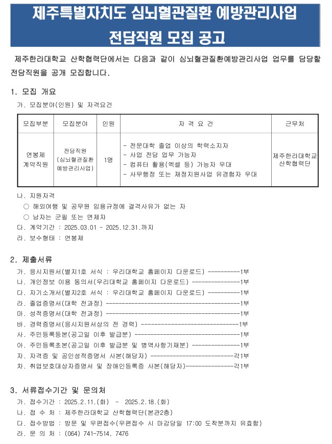 »êÇÐÇù·Â´Ü (½É³úÇ÷°üÁúȯ¿¹¹æ°ü¸®»ç¾÷) Àü´ãÁ÷¿ø ¸ðÁý °ø°í