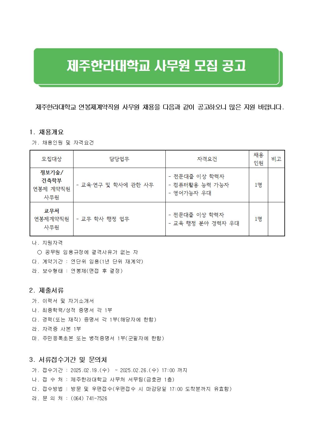 Á¤º¸±â¼ú°ÇÃàÇкÎ, ±³¹«Ã³ ¿¬ºÀÁ¦°è¾àÁ÷¿ø(»ç¹«¿ø) ¸ðÁý °ø°í