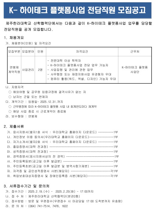 »êÇÐÇù·Â´Ü (K-ÇÏÀÌÅ×Å©Ç÷§Æû»ç¾÷) Àü´ãÁ÷¿ø ¸ðÁý °ø°í