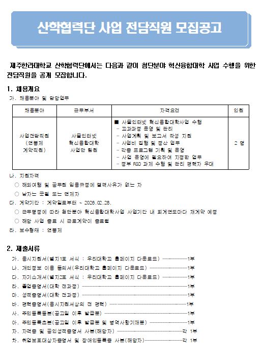 »êÇÐÇù·Â´Ü (÷´ÜºÐ¾ßÇõ½ÅÀ¶ÇÕ´ëÇлç¾÷) Àü´ãÁ÷¿ø ¸ðÁý °ø°í