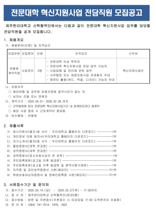 »êÇÐÇù·Â´Ü (Àü¹®´ëÇÐÇõ½ÅÁö¿ø»ç¾÷) Àü´ãÁ÷¿ø ¸ðÁý °ø°í