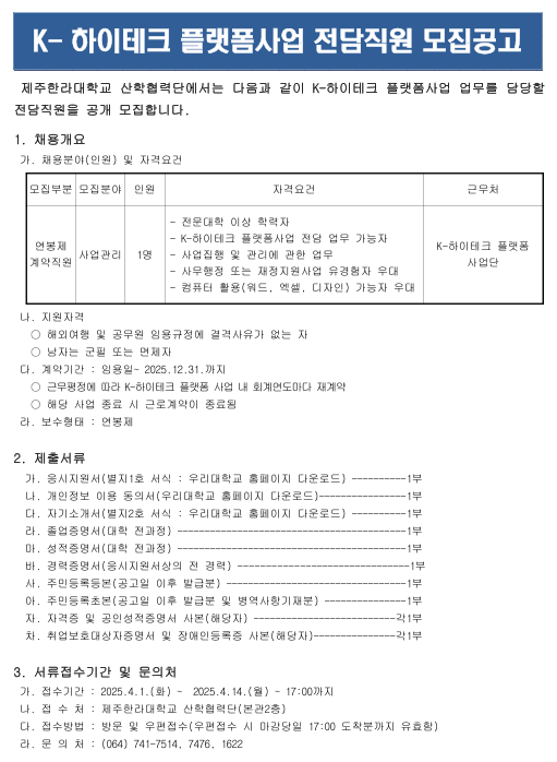 »êÇÐÇù·Â´Ü (K-ÇÏÀÌÅ×Å©Ç÷§Æû»ç¾÷) Àü´ãÁ÷¿ø ¸ðÁý °ø°í