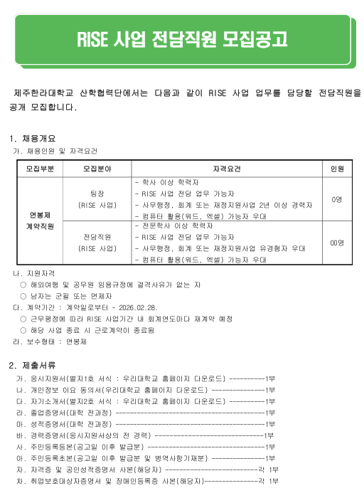 »êÇÐÇù·Â´Ü (RISE»ç¾÷) Àü´ãÁ÷¿ø ¸ðÁý °ø°í
