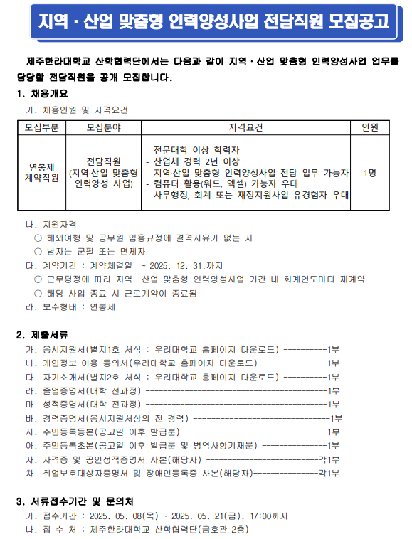 »êÇÐÇù·Â´Ü (Áö¿ª»ê¾÷¸ÂÃãÇüÀη¾缺»ç¾÷) Àü´ãÁ÷¿ø ¸ðÁý °ø°í