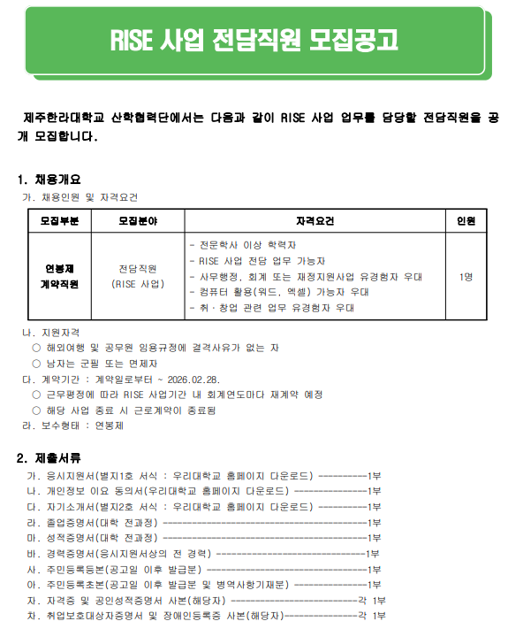 »êÇÐÇù·Â´Ü (RISE»ç¾÷) Àü´ãÁ÷¿ø ¸ðÁý °ø°í