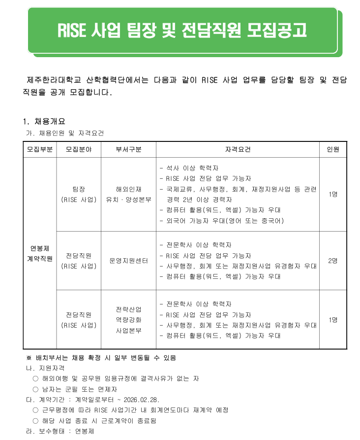 »êÇÐÇù·Â´Ü (RISE»ç¾÷) Àü´ãÁ÷¿ø ¸ðÁý °ø°í