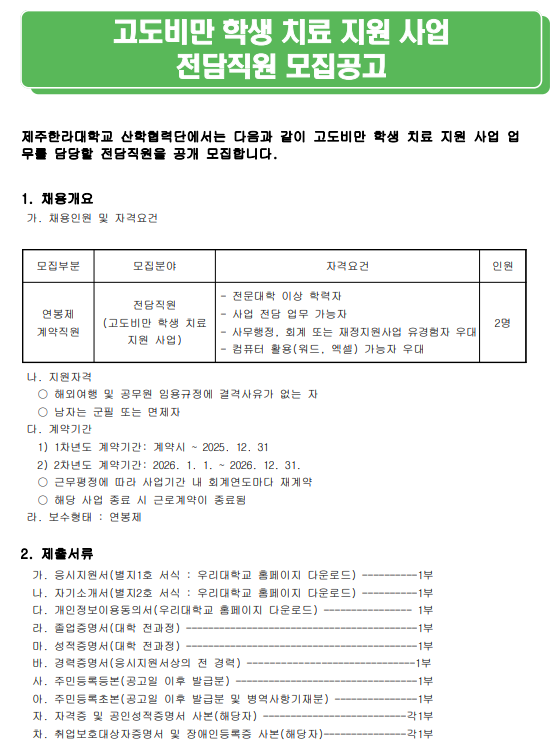 »êÇÐÇù·Â´Ü (°íµµºñ¸¸ÇлýÄ¡·áÁö¿ø»ç¾÷) Àü´ãÁ÷¿ø ¸ðÁý °ø°í