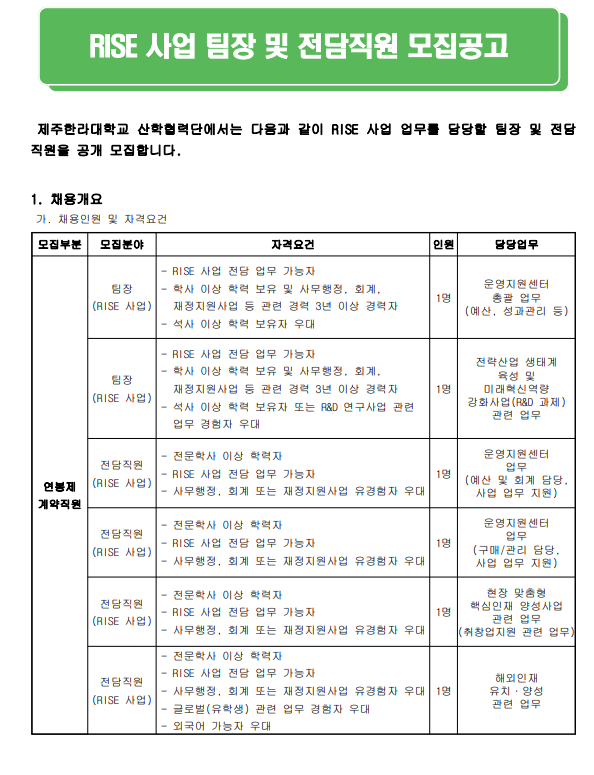 »êÇÐÇù·Â´Ü (RISE»ç¾÷) Àü´ãÁ÷¿ø ¸ðÁý °ø°í