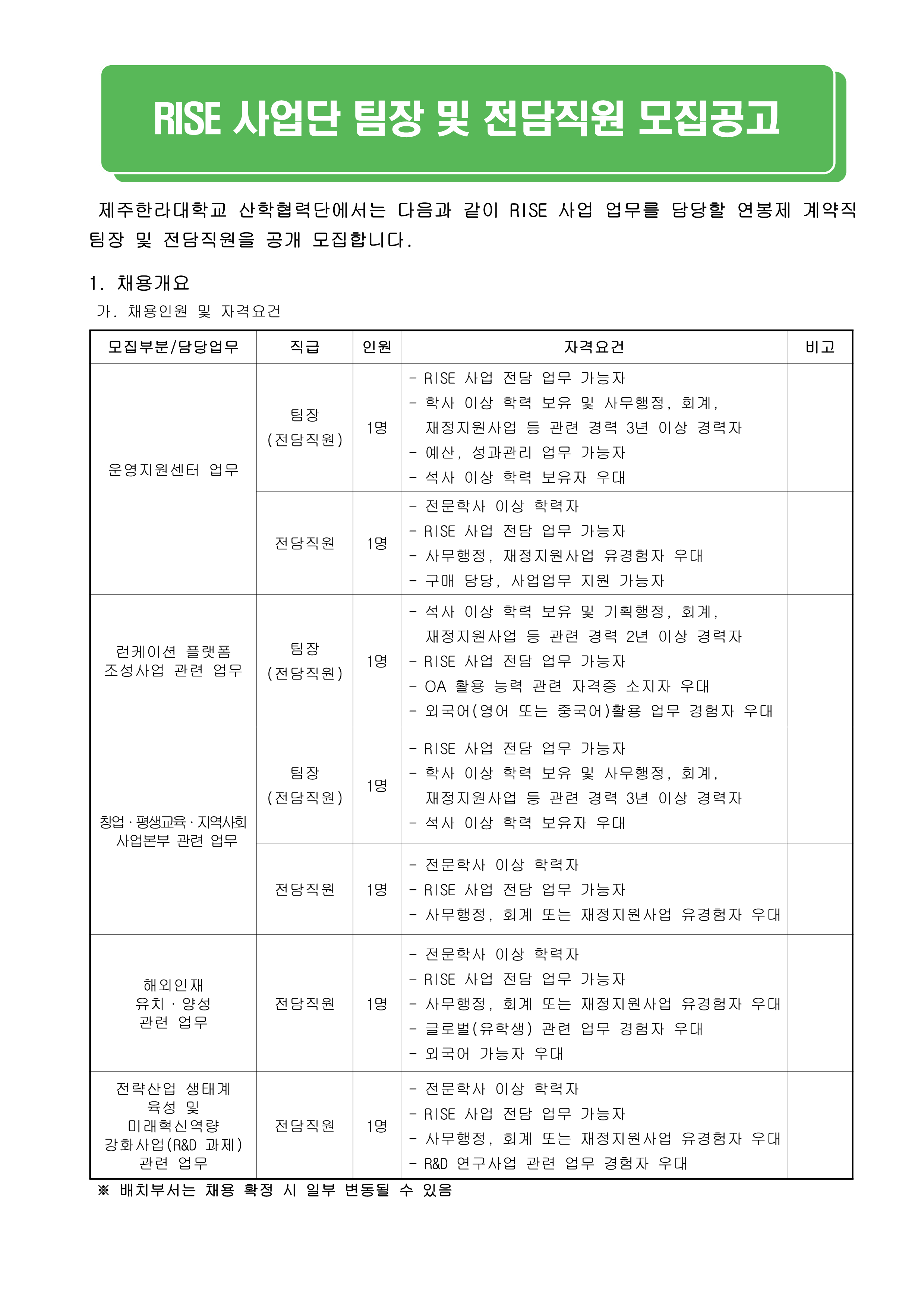 »êÇÐÇù·Â´Ü (RISE»ç¾÷) Àü´ãÁ÷¿ø ¸ðÁý °ø°í