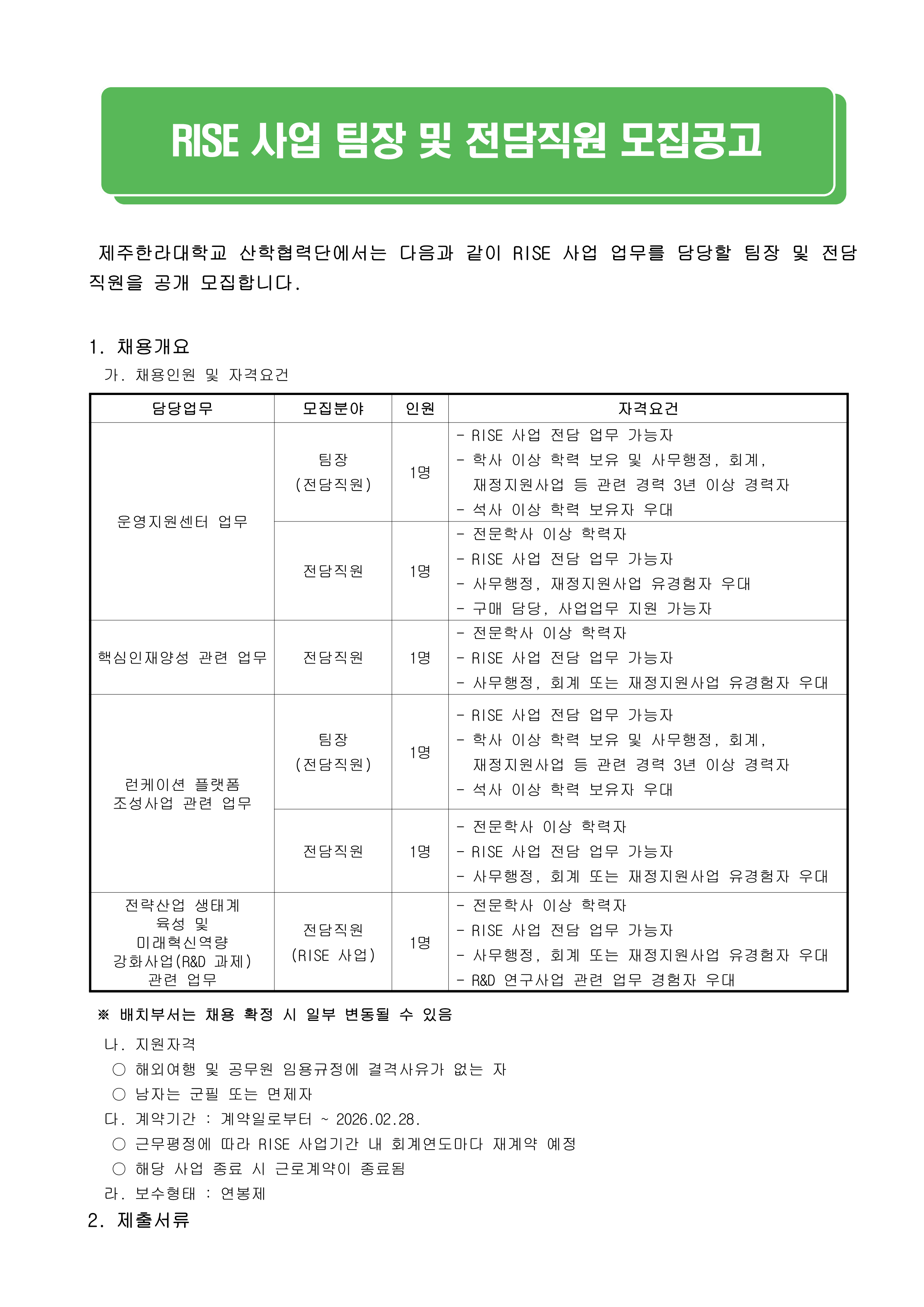 »êÇÐÇù·Â´Ü (RISE»ç¾÷) Àü´ãÁ÷¿ø ¸ðÁý °ø°í