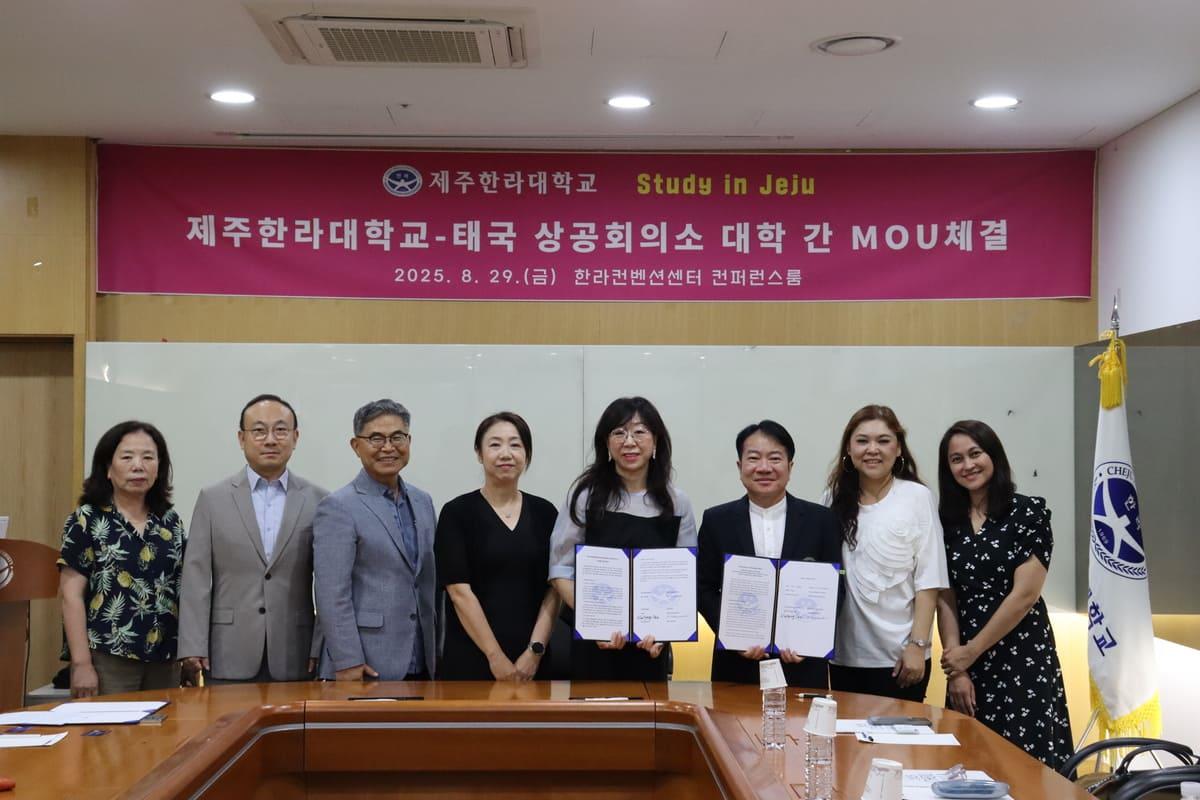 ű¹ »ó°øÈ¸ÀÇ¼Ò ´ëÇÐ(University of the Thai Chamber of Commerce, UTCC)Àº ű¹ÀÇ ´ëÇ¥ÀûÀÎ »ç¸³ Á¾ÇÕ´ëÇÐÀ¸·Î, 1940³â¿¡ ¼³¸³µÇ¾ú´Ù. ű¹ »ó°øÈ¸ÀǼҰ¡ Á÷Á¢ ¿î¿µÇÏ´Â ÀÌ ´ëÇÐÀº °æ¿µ¡¤°æÁ¦¡¤¹«¿ª ºÐ¾ß¿¡¼ ƯÈ÷ °Á¡À» º¸À¯Çϰí ÀÖÀ¸¸ç, ¾ÖÇÃ, ¾Æ¸¶Á¸ µî »ê¾÷°è¿Í ±ä¹ÐÇÑ ¿¬°è¸¦ ÅëÇØ ½Ç¹« Áß½ÉÀÇ ±³À°À» Á¦°øÇÑ´Ù. ÇöÀç ¾à 20,000¸íÀÇ ÇлýÀÌ ÀçÇÐ ÁßÀ̸ç, ±¹Á¦ ±³·ù¿Í ±Û·Î¹ú ÀÎÀç ¾ç¼º¿¡µµ Àû±ØÀûÀ¸·Î Âü¿©Çϰí ÀÖ´Ù. À̹ø ¹æ¹®´ÜÀº UTCCÀÇ ±³À° ¿ª·®°ú Á¦ÁÖÇѶó´ëÇб³ÀÇ ±¹Á¦ ±³·ù ÀÎÇÁ¶ó¸¦ °áÇÕÇØ ¾Æ½Ã¾Æ±Ç ±Û·Î¹ú ÀÎÀç À°¼º ¸ðµ¨À» ¸ð»öÇϰíÀÚ Á¦ÁÖ¸¦ ã¾Ò´Ù.