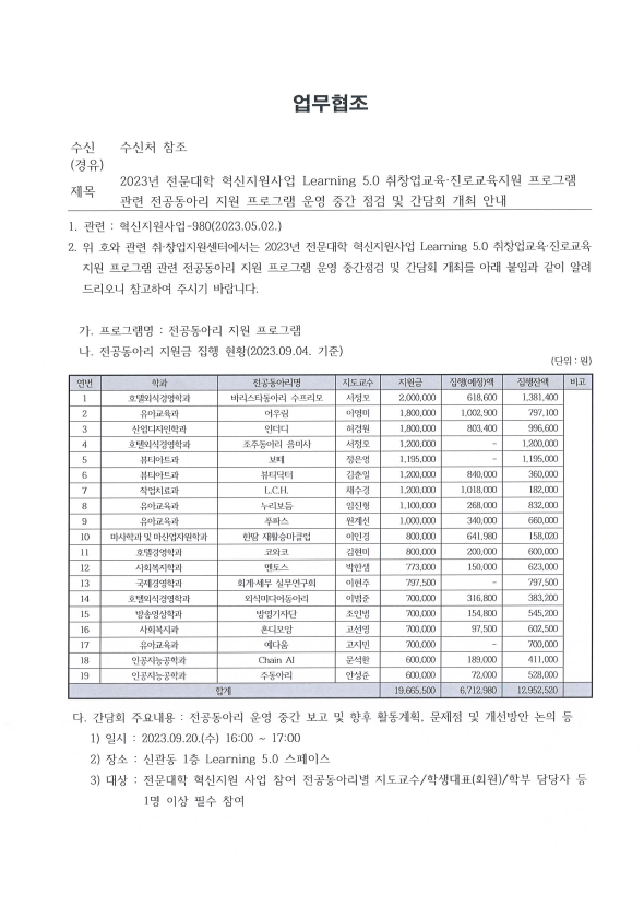 2023³â Àü¹®´ëÇÐ Çõ½ÅÁö¿ø»ç¾÷ Learning 5.0 Ãëâ¾÷±³À°¡¤Áø·Î±³À°Áö¿ø ÇÁ·Î±×·¥ °ü·Ã Àü°øµ¿¾Æ¸® Áö¿ø ÇÁ·Î±×·¥ ¿î¿µ Áß°£ Á¡°Ë ¹× °£´ãȸ °³ÃÖ ¾È³»