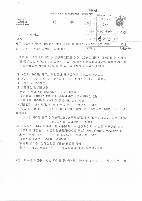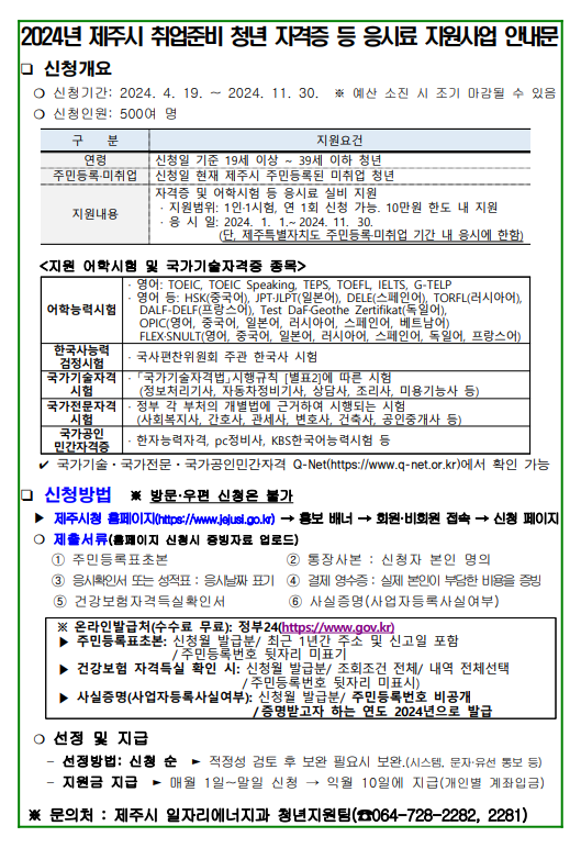 2024³â Á¦Áֽà Ãë¾÷Áغñ û³â ÀÚ°ÝÁõ µî ÀÀ½Ã·á Áö¿ø»ç¾÷ È«º¸ ÇùÁ¶ ¿äû