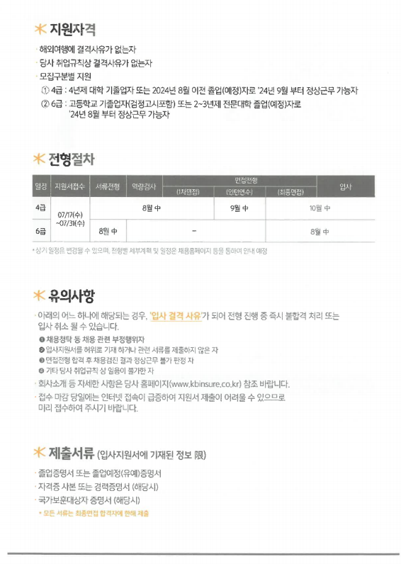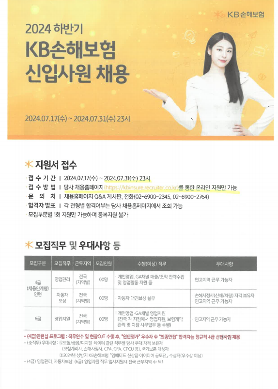 2024 ÇϹݱâ KB¼ÕÇØº¸Çè ½ÅÀÔ»ç¿ø ä¿ë °ø°í È«º¸ ÇùÁ¶ ¿äû