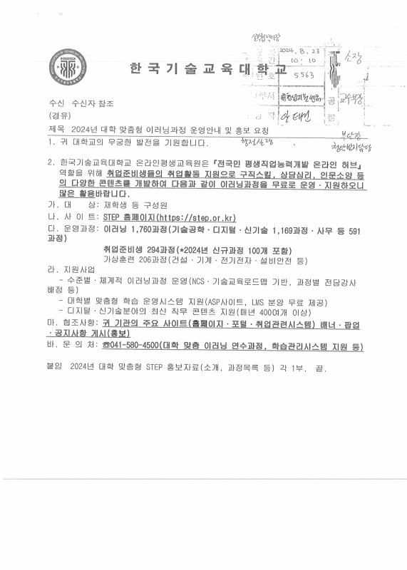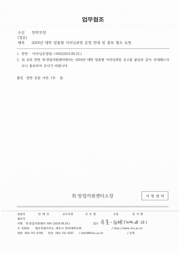 2024³â ´ëÇÐ ¸ÂÃãÇü ÀÌ·¯´×°úÁ¤ ¿î¿µ ¾È³» ¹× È«º¸ ÇùÁ¶ ¿äû