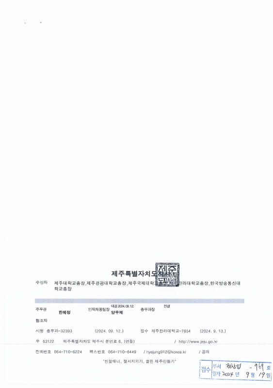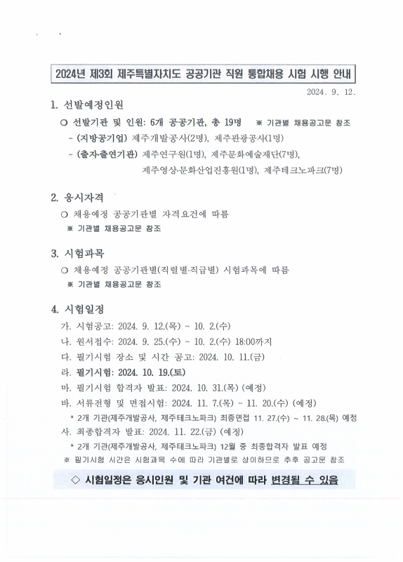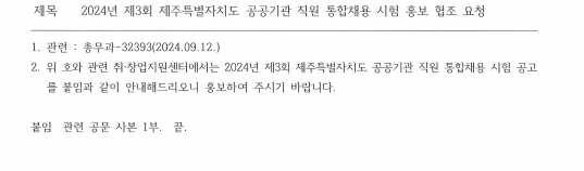 2024³â Á¦3ȸ Á¦ÁÖÆ¯º°ÀÚÄ¡µµ °ø°ø±â°ü Á÷¿ø ÅëÇÕä¿ë ½ÃÇè È«º¸ ÇùÁ¶ ¿äû