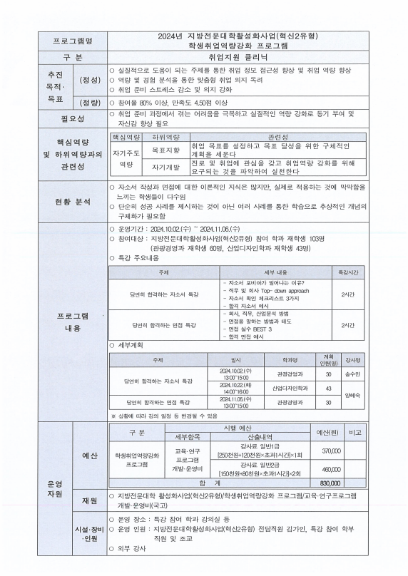 2024³â Áö¹æÀü¹®´ëÇÐȰ¼ºÈ»ç¾÷(Çõ½Å2À¯Çü) ÇлýÃë¾÷¿ª·®°È ÇÁ·Î±×·¥ °ü·Ã Ãë¾÷ Áö¿ø Ŭ¸®´Ð ½ÃÇà ¾Ë¸²