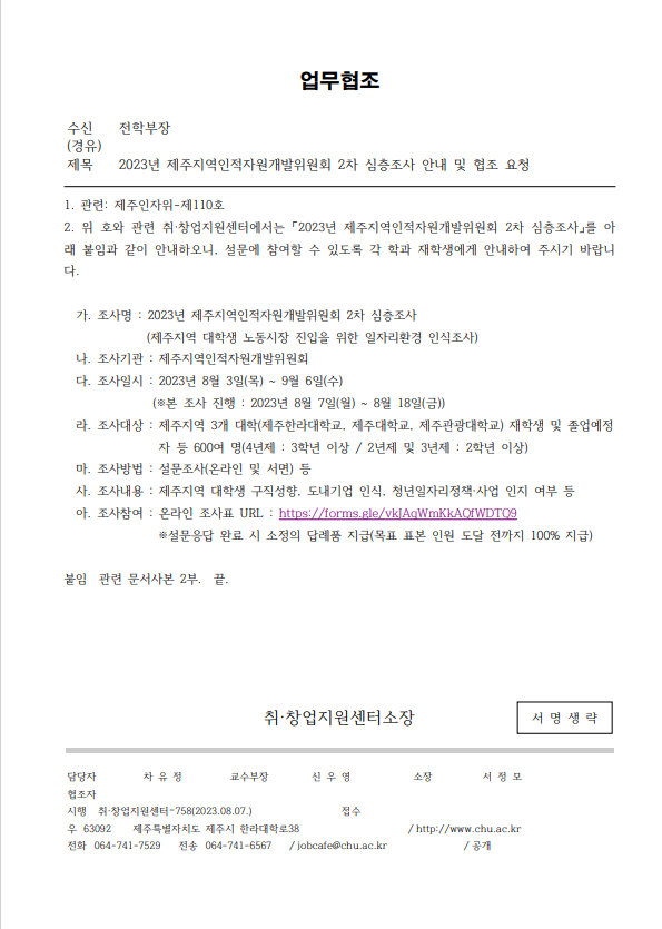 2023³â Á¦ÁÖÁö¿ªÀÎÀûÀÚ¿ø°³¹ß À§¿øÈ¸ 2Â÷ ½ÉÃþÁ¶»ç ÇùÁ¶ ¿äû