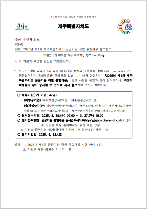 2025³â Á¦1ȸ Á¦ÁÖÆ¯º°ÀÚÄ¡µµ °ø°ø±â°ü Á÷¿ø ÅëÇÕä¿ë È«º¸ÇùÁ¶
