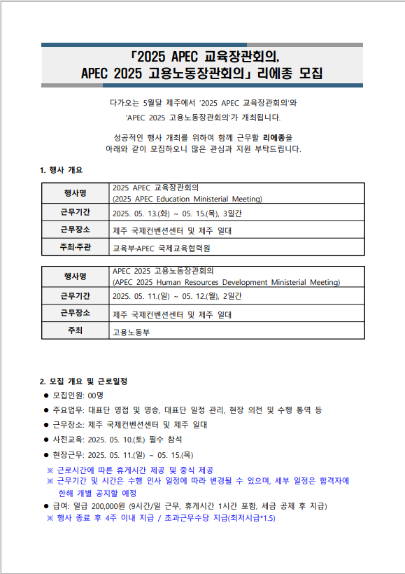 2025 APEC ±³À°Àå°üȸÀÇ, APEC 2025 °í¿ë³ëµ¿Àå°üȸÀÇ ¸®¿¡Á¾ ¸ðÁý