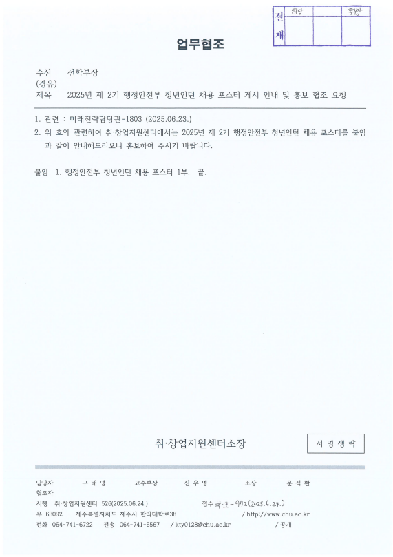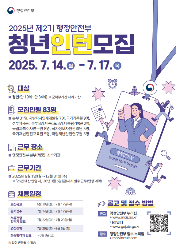 2025³â Á¦ 2±â ÇàÁ¤¾ÈÀüºÎ û³âÀÎÅÏ Ã¤¿ë Æ÷½ºÅÍ °Ô½Ã ¾È³» ¹× È«º¸ ÇùÁ¶ ¿äû