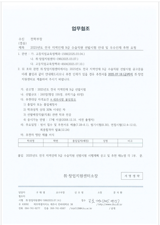 2025³âµµ Àü±¹ Áö¿ªÀÎÀç 9±Þ ¼ö½ÀÁ÷¿ø ¼±¹ß½ÃÇè ¾È³» ¹× ¿ì¼öÀÎÀç Ãßõ ¿äû