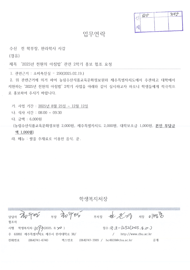 '2025³â õ¿øÀÇ ¾ÆÄ§¹ä' °ü·Ã 2Çбâ È«º¸ ÇùÁ¶ ¿äû
