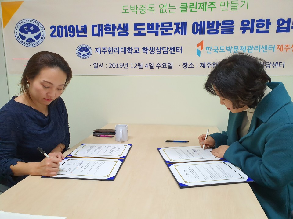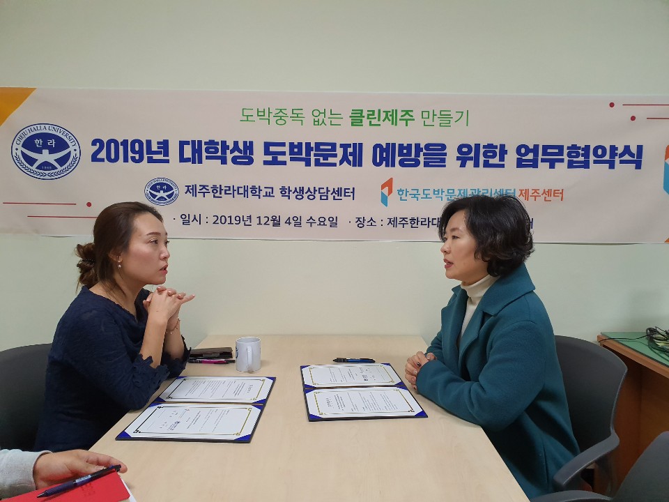 2019³â 12¿ù 4ÀÏ ¿ì¸®´ëÇÐ Çлý»ó´ã¼¾ÅÍ¿Í Çѱ¹µµ¹Ú¹®Á¦°ü¸®¼¾ÅÍ Á¦ÁÖ¼¾ÅÍ °£ ¾÷¹«Çù¾à½ÄÀ» ÅëÇÏ¿©