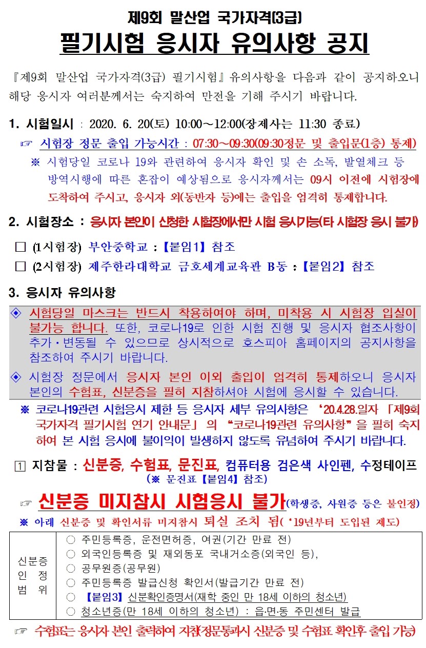 ¾È³çÇϼ¼¿ä. Á¦9ȸ ¸»»ê¾÷ ±¹°¡ÀÚ°Ý(3±Þ) Çʱâ½ÃÇè ÀÀ½ÃÀÚ À¯ÀÇ»çÇ× ¸µÅ©¸¦ ¾Æ·¡¿Í °°ÀÌ °øÀ¯ÇØ µå¸®¿À´Ï ÀÀ½ÃÀÚ²²¼´Â ¼÷ÁöÇÏ¿© Áֽñ⠹ٶø´Ï´Ù.