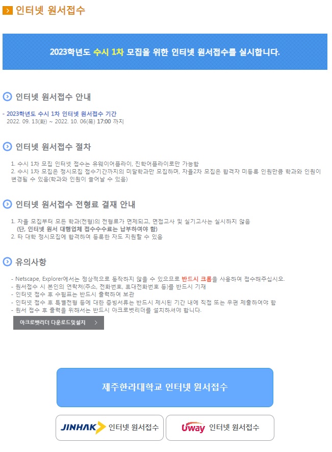 2023Çг⵵ Á¦ÁÖÇѶó´ëÇб³ ½ÅÀÔ»ý ¼ö½Ã¸ðÁý ¿ø¼Á¢¼ö ¾È³»