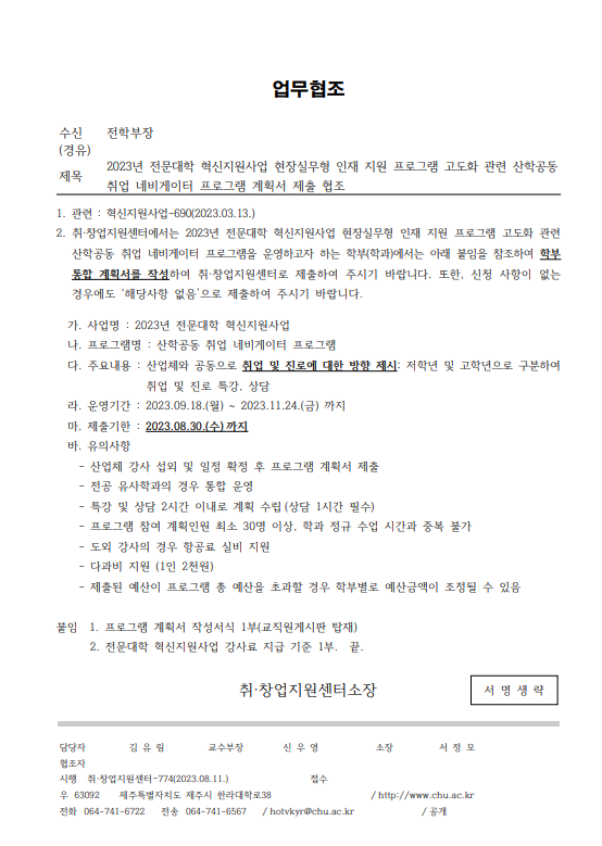 Ãëâ¾÷-774(2023.08.11) ºÙÀÓ1_»êÇаøµ¿ Ãë¾÷ ³×ºñ°ÔÀÌÅÍ ÇÁ·Î±×·¥ ½ÃÇà °èȹ¼ ÀÛ¼º¼½Ä.hwp