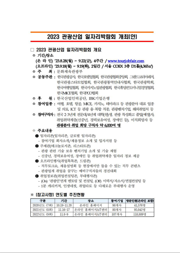 2023 °ü±¤»ê¾÷ ÀÏÀÚ¸® ¹Ú¶÷ȸ °³ÃÖ ¾È³»