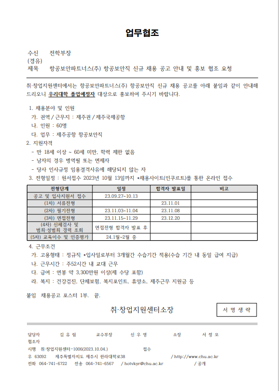 Ç×°øº¸¾ÈÆÄÆ®³Ê½º(ÁÖ) Ç×°øº¸¾ÈÁ÷ ½Å±Ô ä¿ë °ø°í ¾È³» ¹× È«º¸ ÇùÁ¶ ¿äû