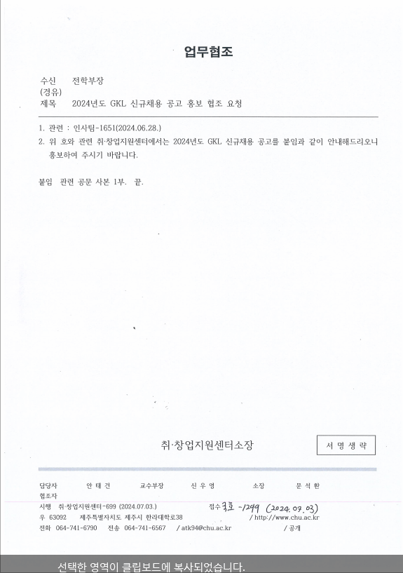 2024Çг⵵ GKL ½Å±Ôä¿ë °ø°í È«º¸ ÇùÁ¶ ¿äû