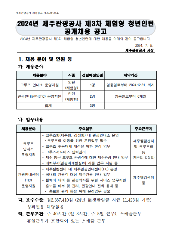 2024³â Á¦ÁÖ°ü±¤°ø»ç üÇèÇü û³âÀÎÅÏ °ø°³Ã¤¿ë °ø°í È«º¸ ÇùÁ¶ ¿äû