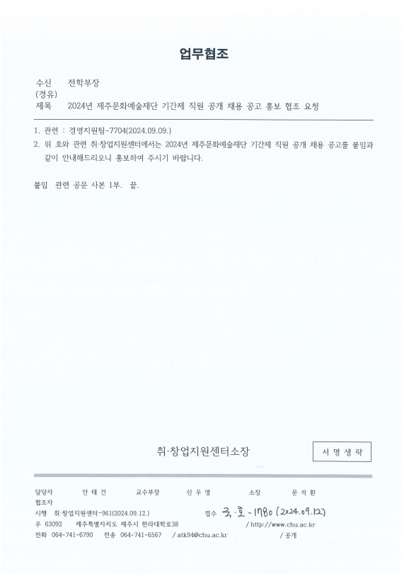 2024³â Á¦ÁÖ¹®È¿¹¼úÀç´Ü ±â°£Á¦ Á÷¿ø °ø°³ ä¿ë °ø°í È«º¸ ÇùÁ¶ ¿äû