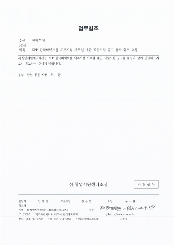 KPPÇѱ¹ÆÄ·¿Æ®Ç® Á¦ÁÖÁöÁ¡ »ç¹«½Ç ³»±Ù Á÷¿ø¸ðÁý °ø°í È«º¸ ÇùÁ¶ ¿äû