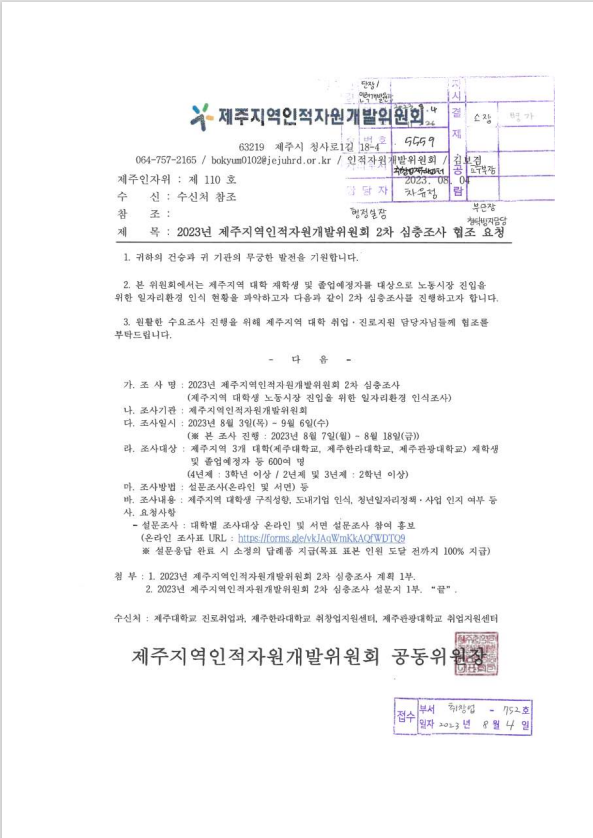 2023³â Á¦ÁÖÁö¿ªÀÎÀûÀÚ¿ø°³¹ß À§¿øÈ¸ 2Â÷ ½ÉÃþÁ¶»ç ÇùÁ¶ ¿äû