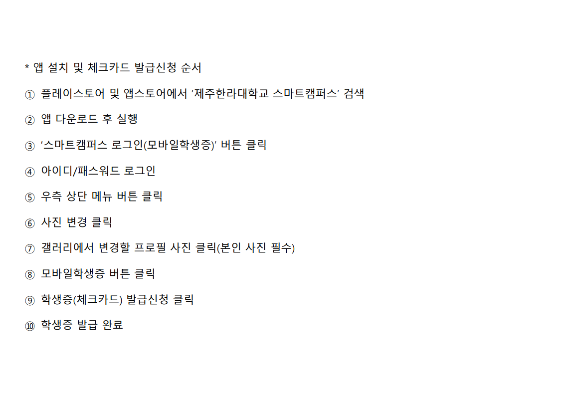Á¦ÁÖÇѶó´ë ½º¸¶Æ®Ä·ÆÛ½º(¸ð¹ÙÀÏ ÇлýÁõ) ¹ß±Þ ÀýÂ÷ ¾È³»