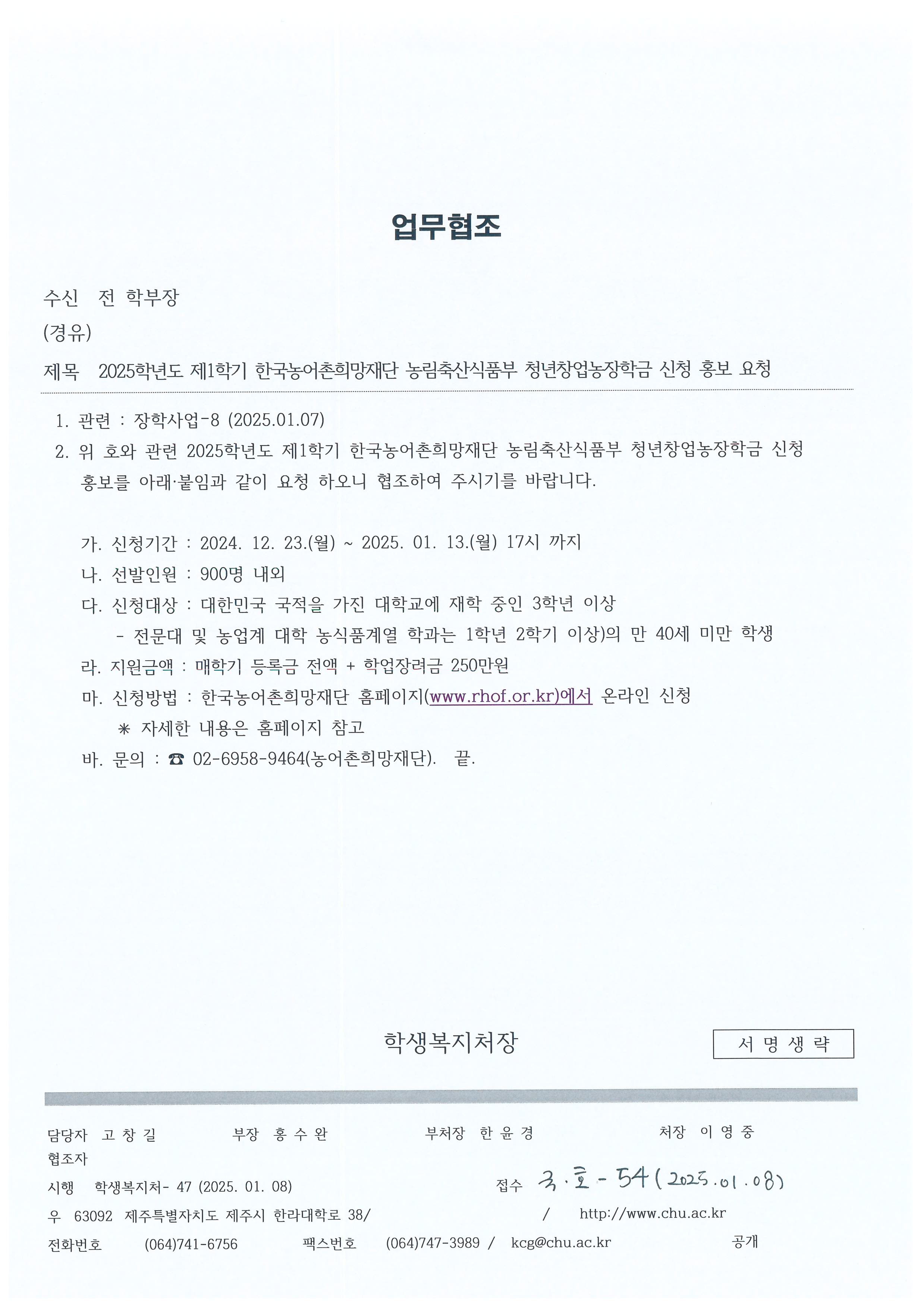 2025Çг⵵ Á¦1Çбâ Çѱ¹³ó¾îÃÌÈñ¸ÁÀç´Ü ³ó¸²Ãà»ê½ÄǰºÎ û³ââ¾÷³óÀåÀåÇÐ±Ý ½Åû È«º¸ ¿äû