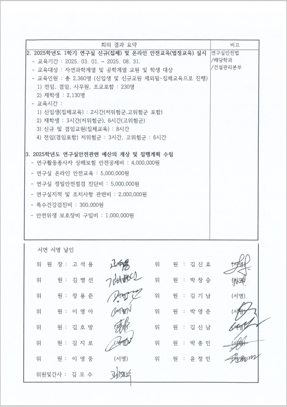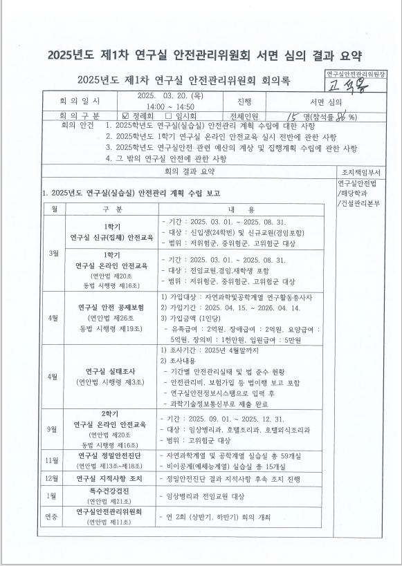 2025Çг⵵ Á¦1Â÷ ¿¬±¸½Ç¾ÈÀü°ü¸®À§¿øÈ¸ ¼¸é ȸÀÇ °á°ú °øÇ¥
