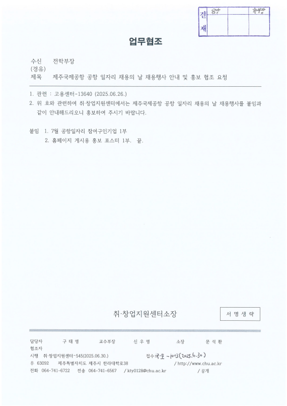 Á¦ÁÖ±¹Á¦°øÇ× °øÇ× ÀÏÀÚ¸® ä¿ëÀÇ ³¯ ä¿ëÇà»ç ¾È³» ¹× È«º¸ ÇùÁ¶ ¿äû