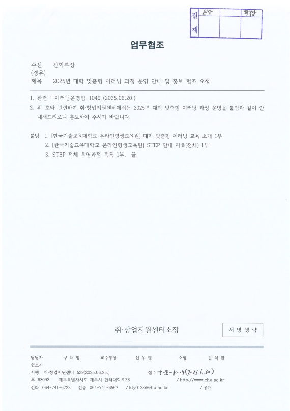 2025³â ´ëÇÐ ¸ÂÃãÇü ÀÌ·¯´× °úÁ¤ ¿î¿µ ¾È³» ¹× È«º¸ ÇùÁ¶ ¿äû